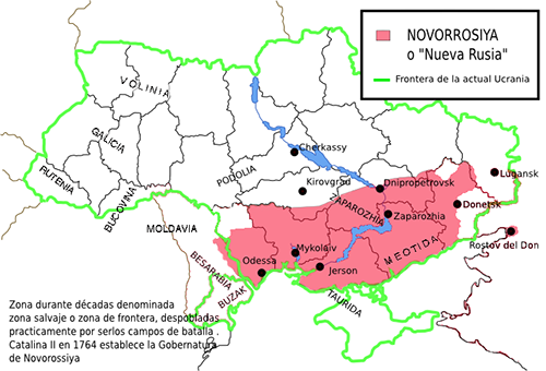 Novorossia (Új Oroszország) tartomány adminisztratív területként Nagy Katalin és I. Pál alatt jött létre a XVIII. sz. második felében, a XVII. sz. tól jellemző gyarmatosítási névadományozást (v.ö. Új-Franciaország, Új-Anglia, Új-Skócia) követve.
