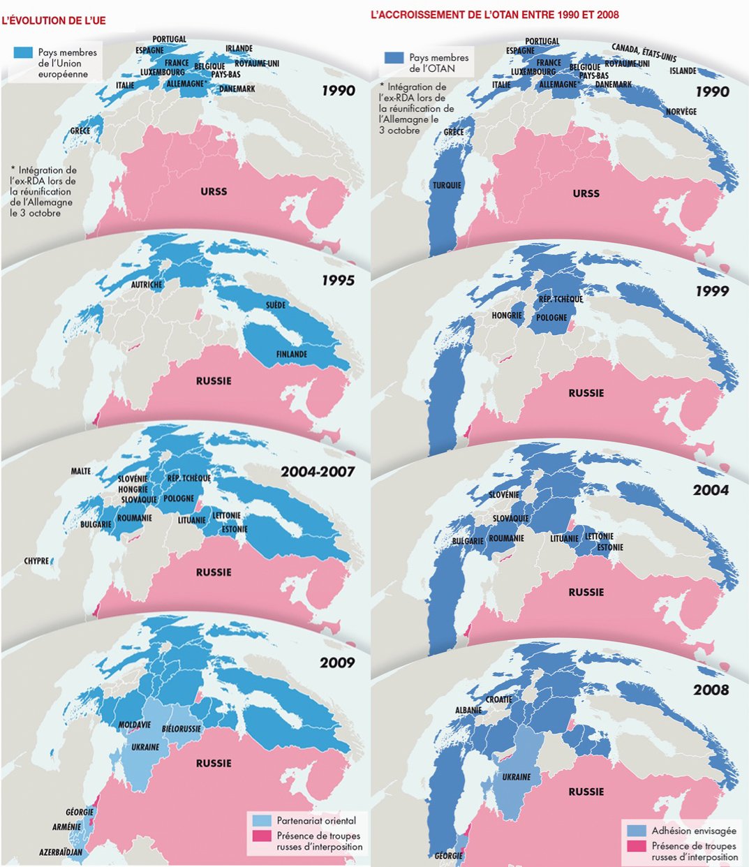 1991-ben a SZU felbomlàsàval 5,3 millio km2 területet vesztett. Gorbacsov annak fejében mondott le ezekröl a területekröl (igaz: màs vàlasztàsa nem is nagyon volt), hogy több alkalommal biztosìtottàk amerikai partnerei: ha hagyja békésen elszakadni ezen àllamokat, akkor oda a NATO nem fogja "betenni a làbàt". Az oroszok szemében ez azt jelentette, hogy a térség megmaradna egyfajta cordon sanitaire-nek, semleges övezetnek /v.ö. Ausztria helyzete a hideghàborùban/. A bibi csak az, hogy ezen ìgéretek szòban hangzottak el, s rettentö naivitàs volt orosz részröl ezekröl nem kérni valamiféle ìràsbeli "bizonylatot". (Ès természetesen ignoràlta ezen àllamok szuverenitàsàt, szabad akaratàt is.) Az orosz naivitàsnak nem elsö vagy utolsò jele ez, Lìbia vagy Koszovò kapcsàn szintén becsapottnak érzik magukat (s lényegében joggal).